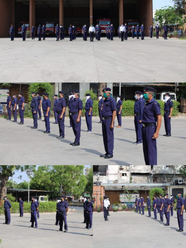 मणिनगर फायर स्टेशन के फायर ऑफिसर शुभम खड़िया और उनके साथी फायर कर्मचारी ने मिलकर 66 बहादुर फायरमेन की याद में नैशनल फायर सर्विस डे मनाया.