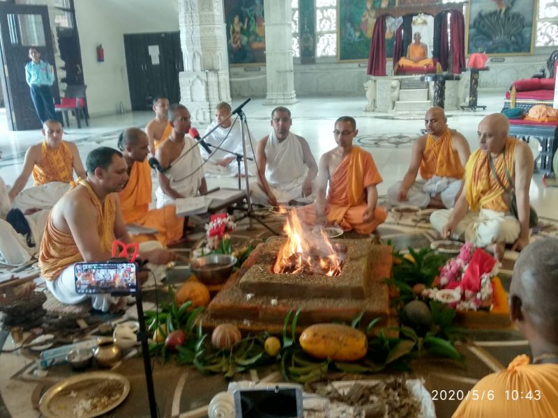 अतः मन्दिर के भक्तों ने भी भगवान से यही प्रार्थना की कि वे अपनी अहैतुकी कृपा करें और विश्व की इस महामारी से रक्षा करें। पूरे उत्सव का सीधा प्रसारण मंदिर के फेसबुक पेज के माध्यम से किया गया। जिसे पूरे विश्व के लगभग 50000 लोगों ने देखा। प्रातः 10 बजे यज्ञ किया गया जिसमें भक्तों ने अपने घर बैठे ही ई आहुति दी।