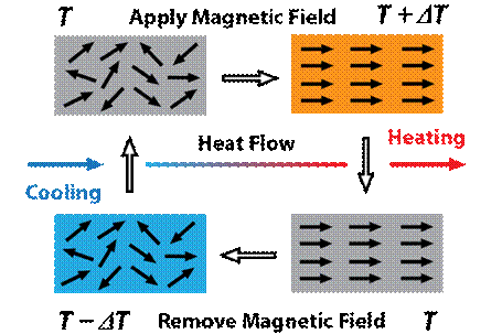 These problems can be avoided by using magnetocaloric materials, as it can provide controlled heating. The advantage of magnetocaloric materials which heat up or cool down with the application and removal of the magnetic field, respectively is that as soon as the magnetic field is removed, cooling effect is generated, unlike in magnetic nanoparticles where overheating persists, even after removal of the magnetic field.
