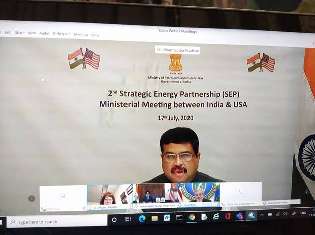 This emerged at a virtual ministerial meeting of the U.S.-India Strategic Energy Partnership (SEP) to review progress, highlight major accomplishments, and prioritize new areas for cooperation, on July 17, 2020. The meeting was co-chaired by U.S. Secretary of Energy Dan Brouillette and Indian Minister of Petroleum and Natural Gas and of Steel Shri Dharmendra Pradhan.