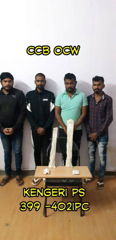 Senior officer told media persons that a tip off was received by our OCW wing ACP,Dharmendra that a group of people are doing preparation of robbery near Uttarahalli main road and are in possession of lethal weapons acting on a tip off the team rushed to the spot and detained all the four and seized the lethal weapons.