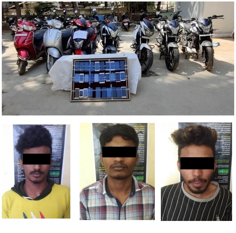 After arresting all the three persons the team has recovered seven bikes and 30 mobile phones worth Rs 9.4 lakh from them.