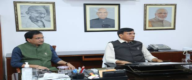 Union Minister for Chemicals and Fertilisers Shri Mansukh Mandaviya today reviewed the initiatives of Department of Fertilizers for Making India Aatmanirbhar in Fertlisers. Minister of State for Chemicals and Fertilizers Shri Bhagwanth Khuba was also present. Secretary, Department of Fertilizers Shri R. K Chaturvedi and senior officials of the Ministry attended the meeting.