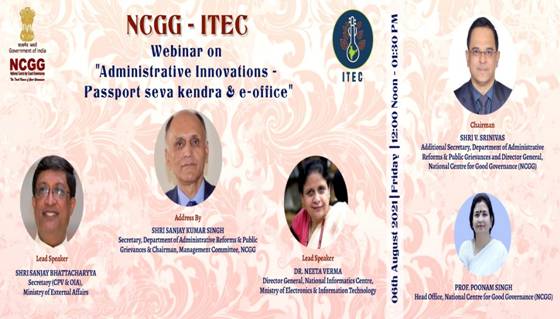 In this context need to conduct webinars showcasing Administrative Innovations at the National/State and District Level was felt. Consequently, Virtual Webinar on “Administrative Innovations- Passport Seva Kendra & e-Office is scheduled to be held on August 6, 2021. The workshop seeks to bring together more than 100 international civil servants of ITEC countries for knowledge sharing sessions with the objective of disseminating innovative practices in the field of Administration. The NCGG will conduct 2 more such webinars during the year.