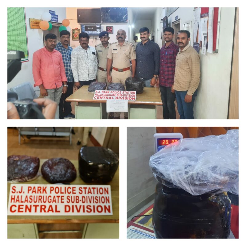 The Central Division police of SJ Park police have arrested four persons for holding banned items and trying to sell to their clients totally 20 Kg Ambergris-Red Mercury Worth of Rs.20 Crore seized from them.