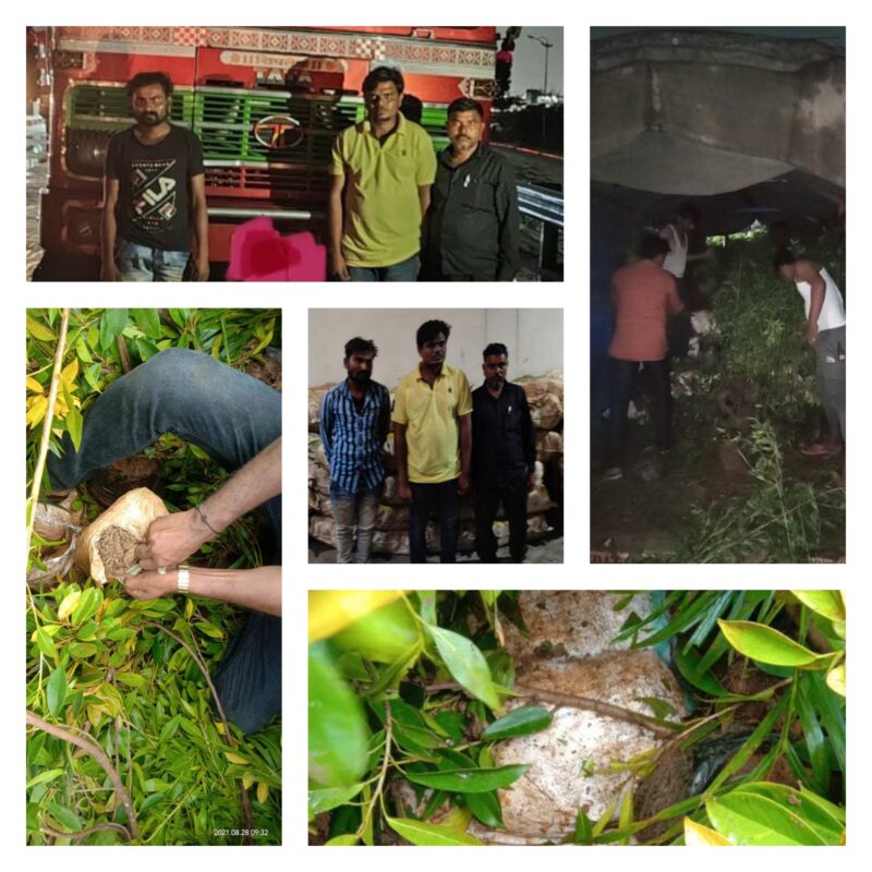 These gunny bags were concealed under tarpaulin sheets and further covered by varieties of nursery saplings in huge quantities in the truck.