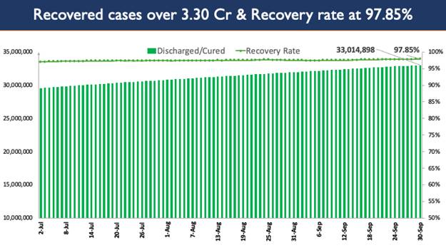 Consequently, India’s recovery rate stands at 97.85%. Recovery Rate is currently at its highest peak since March 2020.
