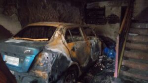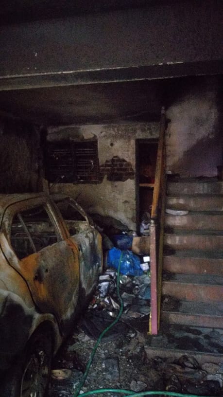 Soon after, the entire house was ablaze.Apart from the car,two scooters parked inside the compound were gutted.