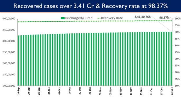 Consequently, India’s recovery rate stands at 98.37%,highest since March 2020.