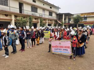 आज सुबह बच्चों ने राणा प्रताप इंटर कालेज से खटीमा फाइबर्स तक पर्यावरण जागरूकता रैली निकाली। बच्चों ने अखबार से बनाए मुकुट पर पर्यावरण जागरूकता के नारों के माध्यम से लोगों को अपनी ओर आकर्षित करने का प्रयास किया। बच्चों ने खटीमा फाइबर्स कारखाने में कागज बनने की प्रकिया को जाना।