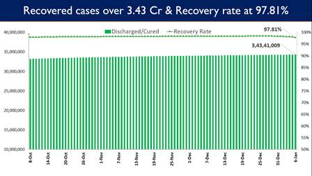 19,206 patients have recovered in the last 24 hours and the cumulative tally of recovered patients (since the beginning of the pandemic) is now at 3,43,41,009.