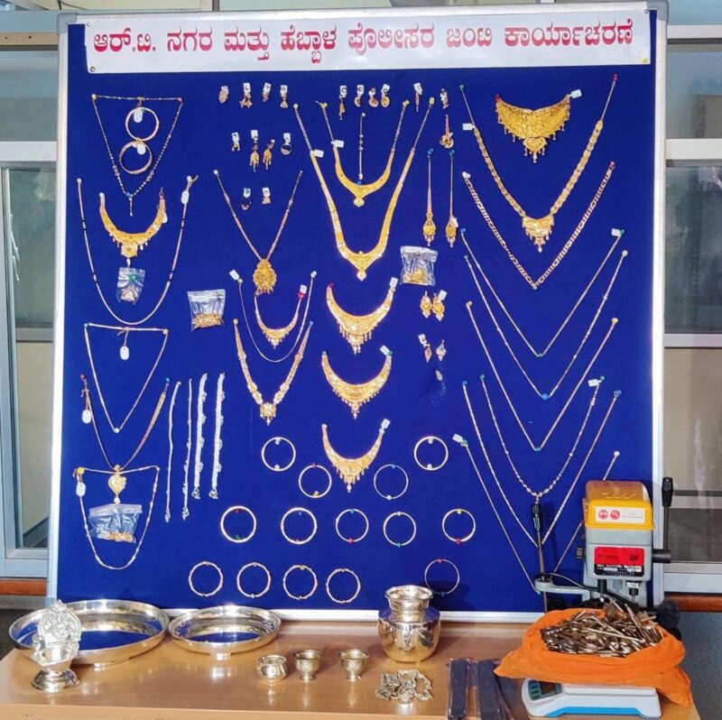 14 cases of burglary detected..2 accused arrested.. Rs 59 lakhs worth of 1 kg 120 gms stolen Gold ornaments, 1 kg silver articles seized.. Grt work by North division officers.. @CPBlr @BlrCityPolice – Sandeep Patil,Addl CP West,said in his tweet.