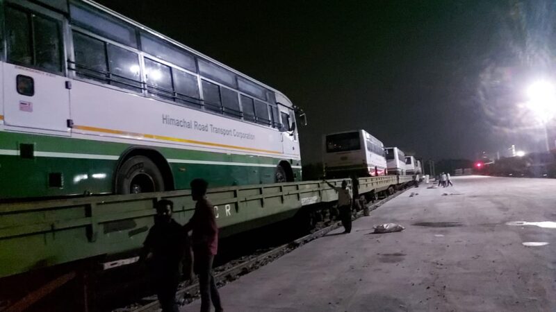 Division has facilitated transportation of Passenger Buses on freight train (DBKM rake) in collaboration with M/s. Ashok Leyland Ltd and M/s.IVC logistics logistics partner for Himachal Pradesh Road Transport Corporation.