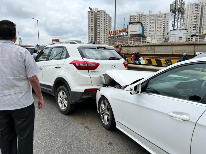 Serial accident on Peenya flyover four vehicles damaged