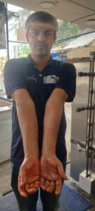 The victim Syed Bilal,working in Sangam house of Kababs in JJ Nagar standing outside the hotel when PSI Lokesh and his staff came and started beating him up not not closing on time.