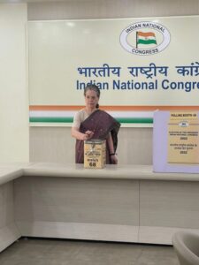 While Sonia Gandhi, former prime minister Manmohan Singh and general secretary Priyanka Gandhi Vadra, voted in Delhi, Rahul Gandhi, who is on the Bharat Jodo Yatra, did so at a meeting room container converted into a polling booth at the yatra campsite in Ballari in Karnataka.
