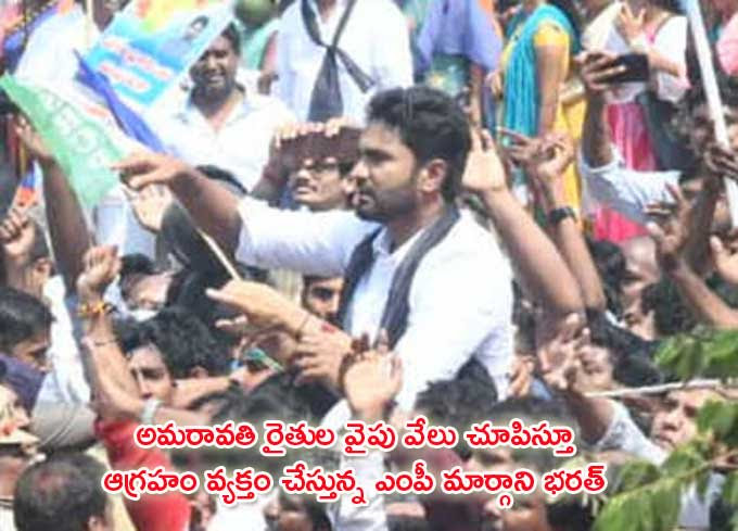 Rajamahendravaram: Vaikapa ranks are continuing to harass Amaravati farmers who are going on a grand march. Vaikapa activists threw water bottles to provoke farmers who were going on a padayatra in Rajamahendravaram city. While the farmers and all-party leaders were passing through Azad Chowk peacefully, Vaikapa ranks committed this misdeed by displaying black balloons. This created tension there. Amaravati farmers and Vaikapa activists are shouting slogans.
