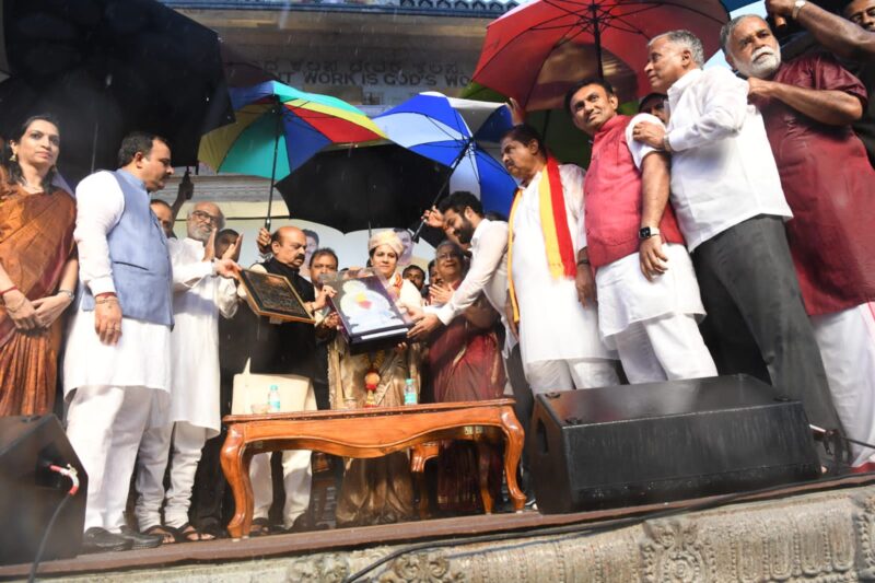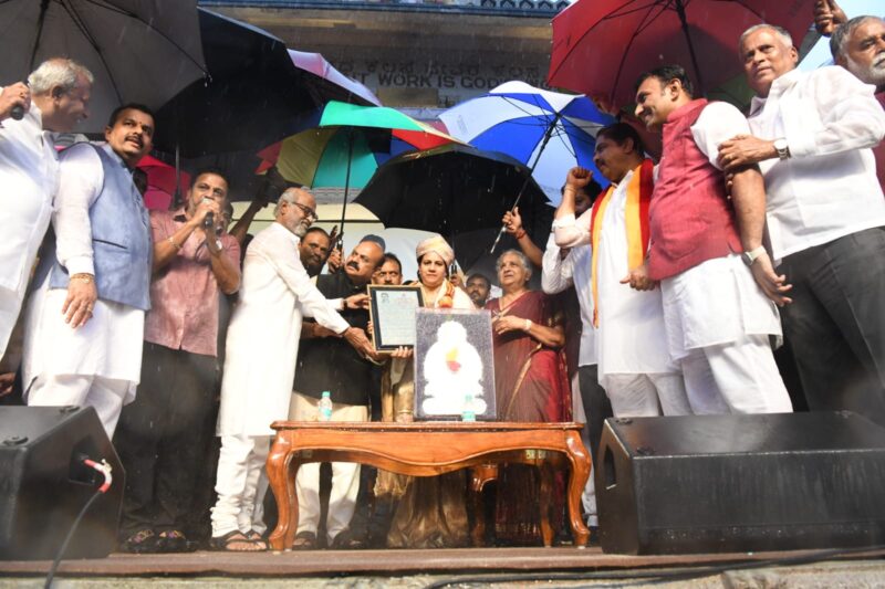 midst heavy downpour ‘Karnataka Ratna’,the state government’s highest civilian award, was presented posthumously to Power Star Dr Puneet Raj Kumar in the presence of scores of his fans here on Tuesday.