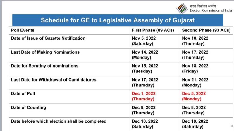 December 1st and Dec 5th & Counting of votes on Dec 8th 2022 by ECI