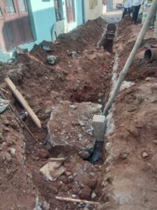 At around 3 pm,the duo dug up the public road and dumped the debris and mud on either side of the trench.