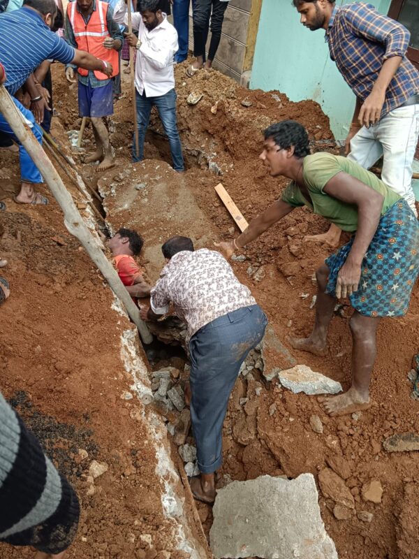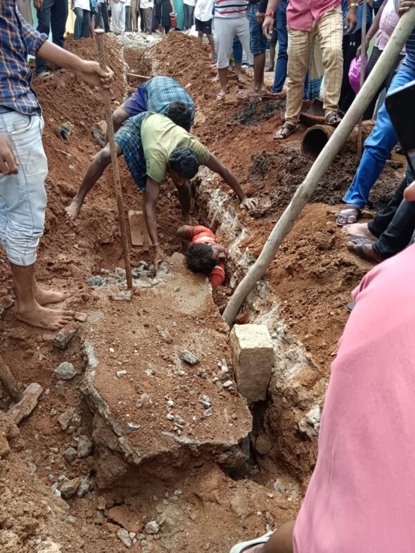 Senior officer told reporters that the duo along with others were hired as daily wages by contractor to lay BWSSB sanitary line for the Bhajana Mandira road.