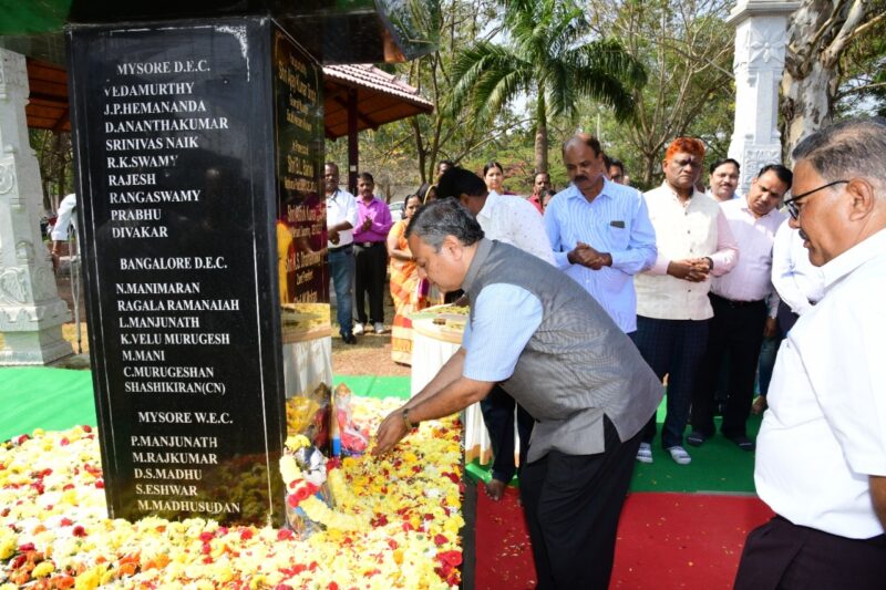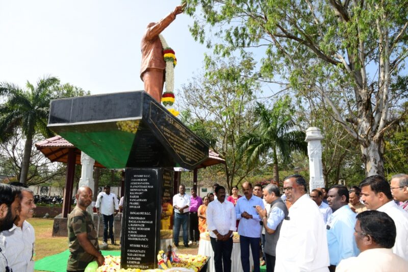 Floral tributes were paid to Dr. B.R. Ambedkar by Prashant Kumar Mishra,Additional General Manager,Principal Heads of the Departments,Staff and the representatives of the trade unions and SC/ST association etc. of South Western Railway at the function organized at Rail Soudha,today.