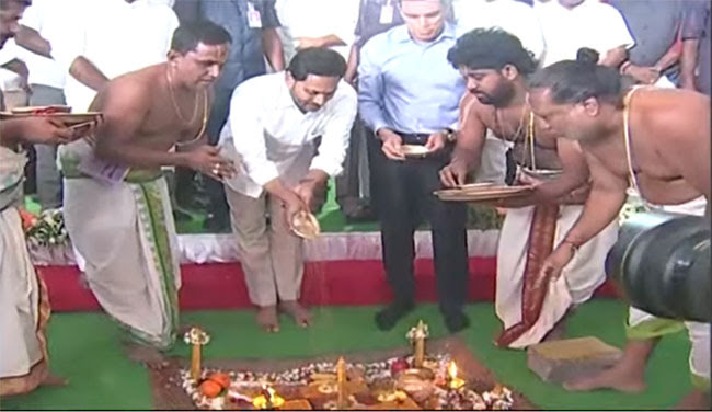 CM Jagan performed Bhoomi Puja for construction of steel industry in Kadapa. JSW Group Chairman Sajjan Jindal participated in the Bhumi Puja along with the CM.
