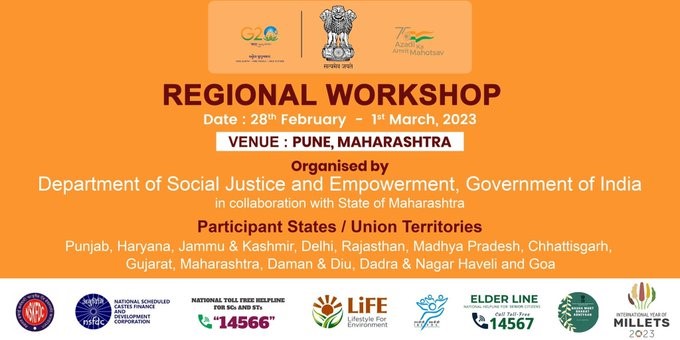 The Union Ministry of Social Justice and Empowerment in collaboration with the State Government of Maharashtra, has organised a two-day regional workshop in Pune on the 28th of February 2023 and the 1st of March 2023, on the various acts, rules and schemes under the Ministry of Social Justice and Empowerment, Government of India. Twelve States and Union Territories from across India are participating in the workshop.