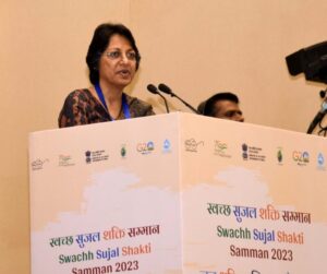 In her address, President observed that women are at the forefront of all the 3 missions of Ministry of Jal Shakti, ‘We recognize the efforts of women in the Self-Help Groups and community-based organizations who have played a vital role in spreading awareness about the importance of water conservation, water management and sanitation. Their hard work and determination have been instrumental in the success of the Swachh Bharat Mission, Jal Jeevan Mission and Jal Shakti Abhiyan’. President added that it’s the women leadership in the SBM(G) and JJM programs, that has brought piped water supply to more than 11 crore rural households and in achieving more than 2 lakhs ODF Plus villages. Highlighting the overall benefits of the flagship missions, Smt. Murmu said, “Nobel laureate Michael Kremer, in his study has reported that 1.36 lakh lives of children under five years of age can be saved every year in rural India by providing safe and adequate drinking water through tap connections and having safe sanitation practices”.