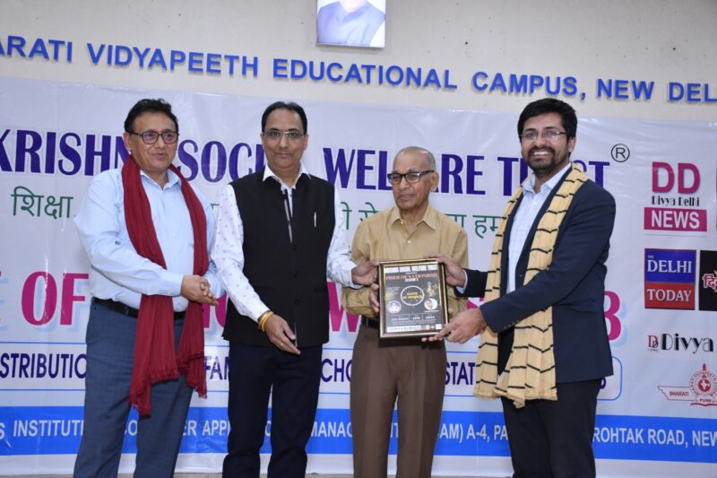 नई दिल्ली। दिल्ली के पश्चिम विहार में स्थित भारतीय विद्यापीठ इंस्टीटूयुड ऑफ कम्प्युटर एपलिकेशन एंड मैनेजमेंट में कृष्णा सोशल वेलफेयर ट्रस्ट द्वारा प्राइड ऑफ नेशन अवॉर्ड सीजन-2 का आयोजन किया गया। इस कार्यक्रम को ट्रस्ट के ट्रस्टी डॉ. एस.डी. चौहान, राजेश चौहान व अनिता चौहान के नेतृत्व में आयोजित किया गया। इस अवसर पर स्कूल के बच्चों को स्कूल बेग, स्टेशनरी और जरुरतमंद व्यक्तियों को राशन वितरित किया गया। इस अवसर पर मुख्य अतिथि के तौर पर पश्चिमी दिल्ली के एडीएम भीका राम मीना, द्वारका कोर्ट के जज मनीष गुप्ता, साईबर क्राइम एसीपी अरुण चौधरी, कृष्णा सोशल वेलफेयर ट्रस्ट के अध्यक्ष परमजीत सिंह पम्मा, एसएचओ साईबर क्राइम संदीप पंवर, सिंगर एंड सोशल वर्कर ममता चौधरी उपस्थित रहे। इस कार्यक्रम की शुरुआत दीप प्रज्वलन व गणेश वंदना के साथ की गई। इस अवसर पर बच्चों द्वारा डांस भी प्रस्तुत किया गया और गायक कलाकारों ने अपने गानों से कार्यक्रम में चार-चांद लगा दिए। इस अवसर पर समाजसेवी, डॉक्टर्स, मॉडल्स, मेकअप आर्टिस्ट, सिंगर्स, गायक कलाकार सहित कई वर्ग के लोग उपस्थित रहे। इस अवसर पर सभी गणमान्य अतिथियों को सम्मानित किया गया। इस कार्यक्रम की सभी अतिथियों ने प्रशंसा की। जानकारी के अनुसार कृष्णा सोशल वेलफेयर ट्रस्ट पिछले कई वर्षों से समाज के हित के लिए कार्य कर रहा हैं जिसमें जरुरतमंदो को राशन, स्कूल के बच्चों को स्कूल बैग, स्टेशरी व कई बच्चों को सनातन धर्म के प्रेरित करने के लिए सुंदरकाण्ड का पाठ भी सिखाया जाता हैं।