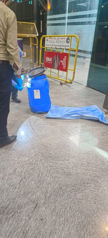 Sensing danger they left the drum at the entrance and escaped in an autorickshaw.