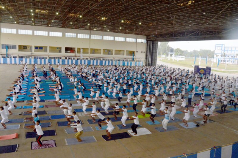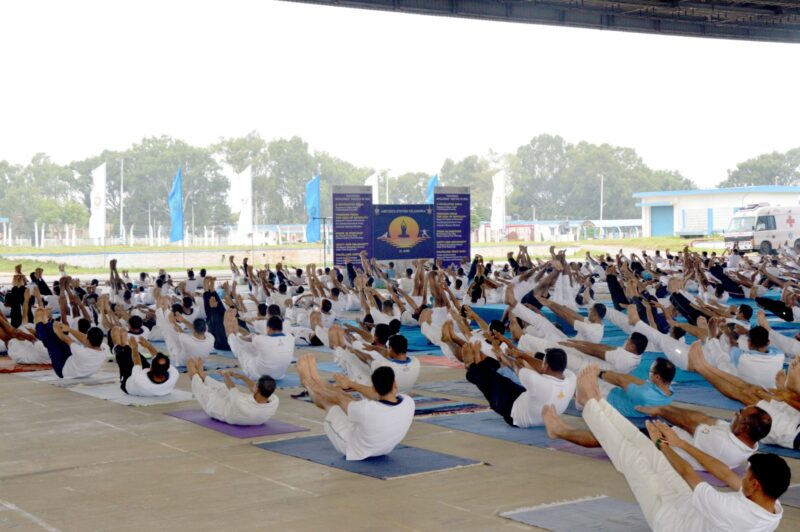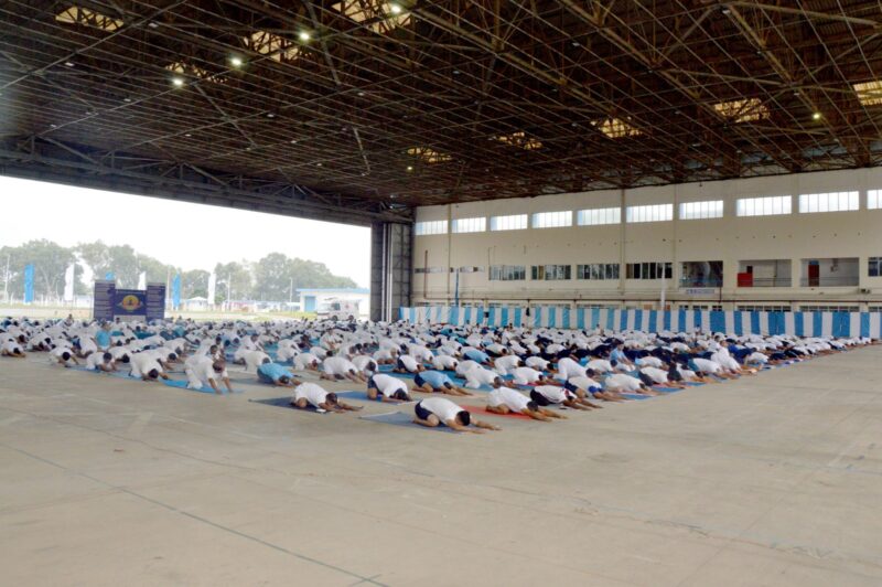 Recognizing the immense power and importance of Yoga to reinvigorate immunity and fitness, the 9th International Yoga Day was celebrated at Air Force Station Yelahanka today with the theme “Har Ghar Aangan Yoga”, which means Yoga in the courtyard of every house.