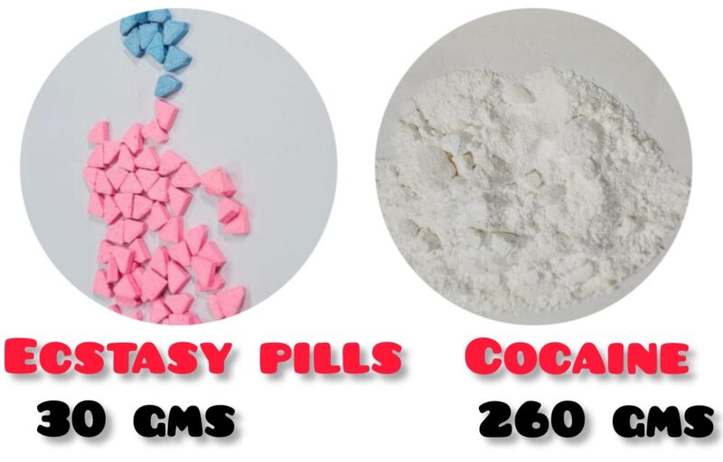 he KG Nagar police have arrested two Nigerian nationals and recovered 260 grams of cocaine and 30.3 grams of ecstasy pills worth Rs.30 lakh from them.