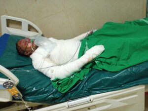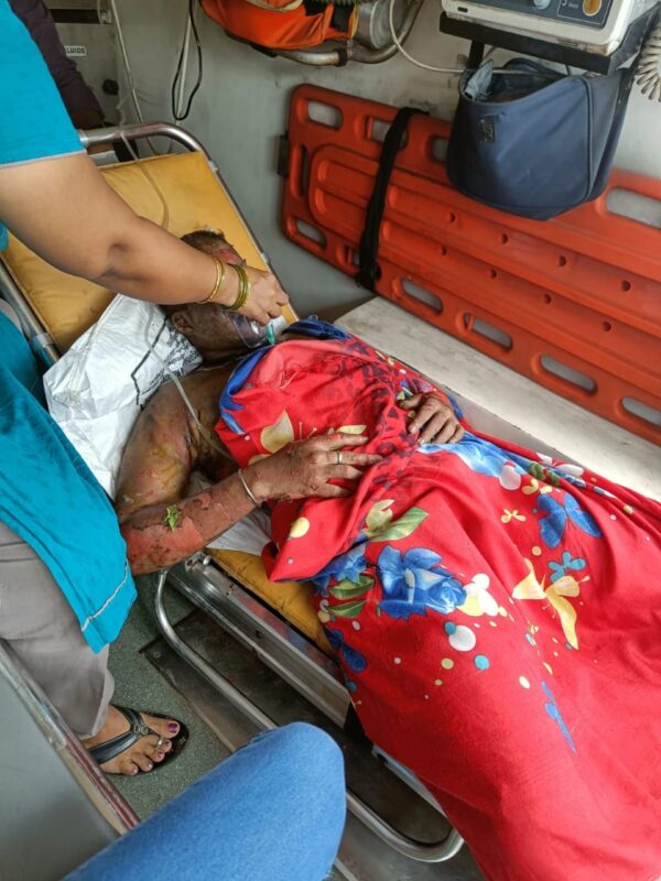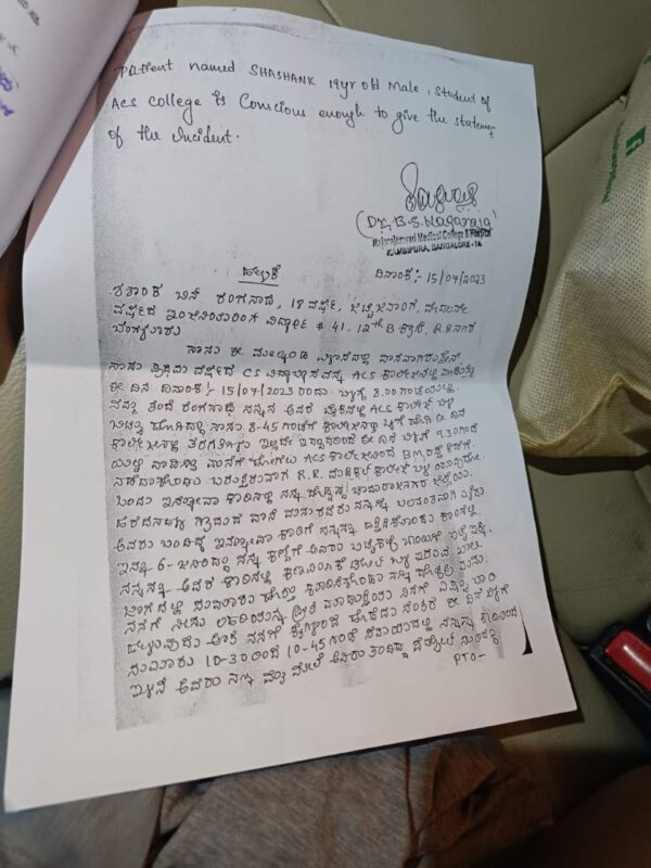 Shashank raised alarm and rolled on the grounds to put out the fire.He called his friends and informed about the incident.They rushed to the spot and took him to victoria hospital for treatment.