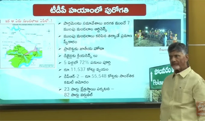 Mangalagiri: Telugu mother would be happy if Polavaram is completed, said Chandrababu TDP chief. He said that he had earlier suggested to Vajpayee to link the rivers in the spirit of the Golden Quadrilateral. Chandrababu held a media conference on ‘Polavarani Jagane Shani’. Jagan was criticized for stopping the Polavaram works on the day of swearing-in.