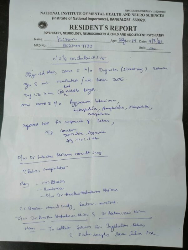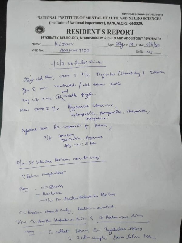 The rabies agrivated and he was admitted to NIMHANS where the doctors told the family that he was in his last stage .