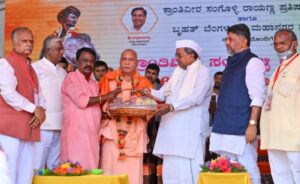 He spoke at the 226th birth anniversary of Krantiveera Sangolli Rayanna organized jointly by Krantiveera Sangolli Rayanna Foundation and Bruhat Bangaluru Mahanagara Corporation and garlanded the statue of Rayanna.