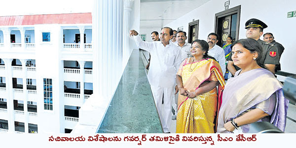 After that, the CM gave a tea dinner to the Governor. On this occasion, the Governor asked CM KCR about the construction features of the Secretariat and the details of the advanced facilities there. The structure of the Secretariat was praised as great. In a pleasant atmosphere, women ministers and senior officials including the CS held an Ishta Goshti. After completing his visit to the Secretariat, the CM went to the main gate and bid farewell to the Governor who was on his way back. Ministers Harish Rao, Prashanth Reddy, Mallar Reddy, Mahmood Ali, Puvvada Ajay Kumar, Errabelli Dayakar Rao, MIM MP Asaduddin Owaisi, MLCs Palla Rajeshwar Reddy, Madhusudanachari, MLAs Akbaruddin Owaisi, Dan Nagender, Balka Suman, Korukanti Chander, Planning Commission Sub President Boinapally Vinodkumar and others participated.