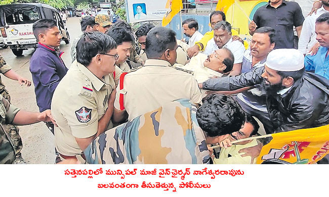 People have supported the bandh in many places. Shops were voluntarily closed. Private schools have announced holidays in advance. In this background, the police, who advocated on behalf of the government, tried tirelessly to thwart the bandh. The RTC buses were stopped and driven close by. The leaders prevented them from coming to the bus stands. The activists were threatened with Section 144 and Police Act 30 with the intention of not completing the bandh. This created tension in many places. There was a scuffle between the police and the TDP workers. In some places the activists were seriously intimidated. It is a privilege to give warnings to shopkeepers. In many places, schools and shops were opened by the police. Pressure was put on the teachers to open government schools in Gannavaram. Traders did not open shops in Vijayawada city. Heavy deployment of police forced them to open. Otherwise, he warned that cases will be filed. Despite Act 30 and Section 144 in the city, Vaikapa leaders held massive demonstrations and inauguration ceremonies. As a thank you to CM Jagan for sending Chandrababu to jail, plexiglasses were set up in Jaggaiyapet to provoke TDP workers. It is noteworthy that the police did not stop them. Although there were not many passengers, the buses were forced to turn around.