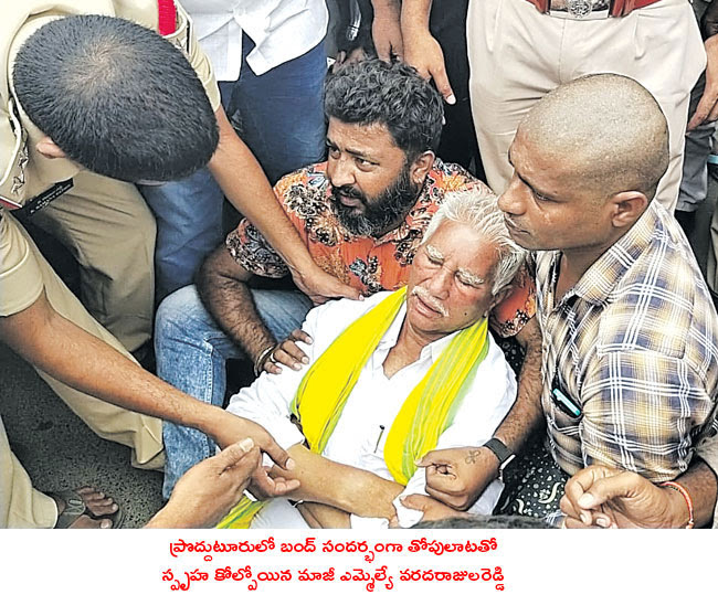 TDP state president Achchennaidu was placed under house arrest at his residence in Visakhapatnam. Former minister and MLA Ganta Srinivasa Rao, former minister Bandaru Satyanarayanamurthy, former minister in Chilakaluripet Prathipati Pullarao and district TDP president GV Anjaneyu were arrested by the house. Kimidi Nagarjuna, the in-charge of that constituency in Cheepurupalli, jumped over the wall on Sunday midnight to escape the police and joined the party ranks in the morning protest. The police broke the shutter of the party office and arrested Inturu Nageswara Rao, the in-charge of the TDP Kandukuru Constituency. With this, under the leadership of his wife Saujanya, agitation was held in Kandukur town. Former Minister Narayana and Nellore Rural MLA Kotamreddy Sridhar Reddy were kept under house arrest for the third day. Former minister Devineni Umamaheswara Rao in Gollapudi in the joint Krishna district, Kollu Ravindra in Machilipatnam, Konakolla Narayana Rao and Mandali Buddhaprasad were detained in Avanigadda. Party in-charge Shyavala Devdutt, who was conducting a death march in Tiruvuru, was forcibly taken to the hospital. In Nandigama, former MLA Tangirala Soumya tried to jump over the wall of her house to participate in the bandh and was stopped by the police. Tens of leaders who were worshiping in the temple in Nandigama were detained there. In Vijayawada, former MLC Buddha Venkanna and MLA Gadde Rammohan were detained and shifted to the police station. Bonda Uma was placed under house arrest. After the senior leader of the party, Venigandla Ram, was arrested in Gudivada, the activists turned around. This created a tense situation. Many leaders have been kept under house arrest in other districts as well. Party in-charge Shyavala Devdutt, who was conducting a death march in Tiruvuru, was forcibly taken to the hospital. In Nandigama, former MLA Tangirala Soumya tried to jump over the wall of her house to participate in the bandh and was stopped by the police. Tens of leaders who were worshiping in the temple in Nandigama were detained there. In Vijayawada, former MLC Buddha Venkanna and MLA Gadde Rammohan were detained and shifted to the police station. Bonda Uma was placed under house arrest. After the senior leader of the party, Venigandla Ram, was arrested in Gudivada, the activists turned around. This created a tense situation. Many leaders have been kept under house arrest in other districts as well. Party in-charge Shyavala Devdutt, who was conducting a death march in Tiruvuru, was forcibly taken to the hospital. In Nandigama, former MLA Tangirala Soumya tried to jump over the wall of her house to participate in the bandh and was stopped by the police. Tens of leaders who were worshiping in the temple in Nandigama were detained there. In Vijayawada, former MLC Buddha Venkanna and MLA Gadde Rammohan were detained and shifted to the police station. Bonda Uma was placed under house arrest. After the senior leader of the party, Venigandla Ram, was arrested in Gudivada, the activists turned around. This created a tense situation. Many leaders have been kept under house arrest in other districts as well. Tens of leaders were detained there. In Vijayawada, former MLC Buddha Venkanna and MLA Gadde Rammohan were detained and shifted to the police station. Bonda Uma was placed under house arrest. After the senior leader of the party, Venigandla Ram, was arrested in Gudivada, the activists turned around. This created a tense situation. Many leaders have been kept under house arrest in other districts as well. Tens of leaders were detained there. In Vijayawada, former MLC Buddha Venkanna and MLA Gadde Rammohan were detained and shifted to the police station. Bonda Uma was placed under house arrest. After the arrest of the party’s senior leader Venigandla Ram in Gudivada, the activists turned around. This created a tense situation. Many leaders have been kept under house arrest in other districts as well.