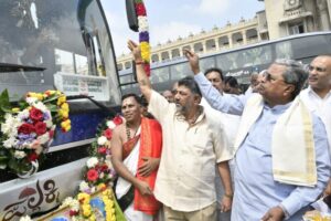 oday,Chief Minister, Siddaramaiah along with Deputy Chief Minister,DK Shivakumar,Transport and Muzrai Minister,Ramalinga Reddy flagged-off new Karnataka Sarige buses,AC Sleeper buses and Non AC Sleeper (PALLAKKI) buses and Upgraded new point to point buses.