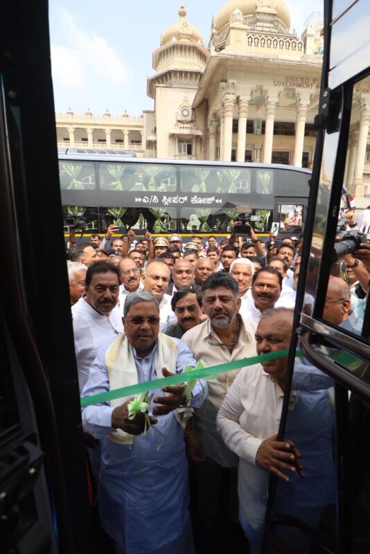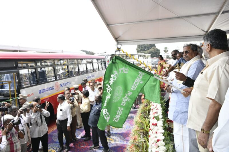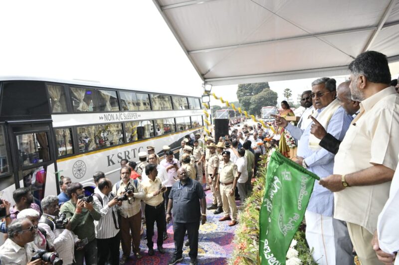 oday,Chief Minister, Siddaramaiah along with Deputy Chief Minister,DK Shivakumar,Transport and Muzrai Minister,Ramalinga Reddy flagged-off new Karnataka Sarige buses,AC Sleeper buses and Non AC Sleeper (PALLAKKI) buses and Upgraded new point to point buses.