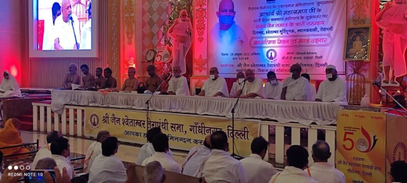 दिल्ली – महामनस्वी आचार्य श्री महाश्रमण जी का दीक्षा कल्याण दिवस का कार्यक्रम भव्य नव्य रूप में मनाया गया।जिसमें दिगंबर आचार्य सुनील सागर, आचार्य विभक्त सागर, ऐलक विज्ञान सागर,मूर्तिपूजक गच्छाधिपति धर्मधुरन्धर, स्थानकवासी संप्रदाय के उत्तरभारतीय प्रवर्तक सुभद्र मुनि , उपप्रवर्तक आनंद मुनि, साध्वी श्री अणिमा आदि का एक साथ उपस्थित होना भी बड़े गौरव का विषय है।आचार्य श्री महाश्रमण के प्रति सभी के हार्दिक उद्गार सुनकर सब बाग-बाग हो गए।