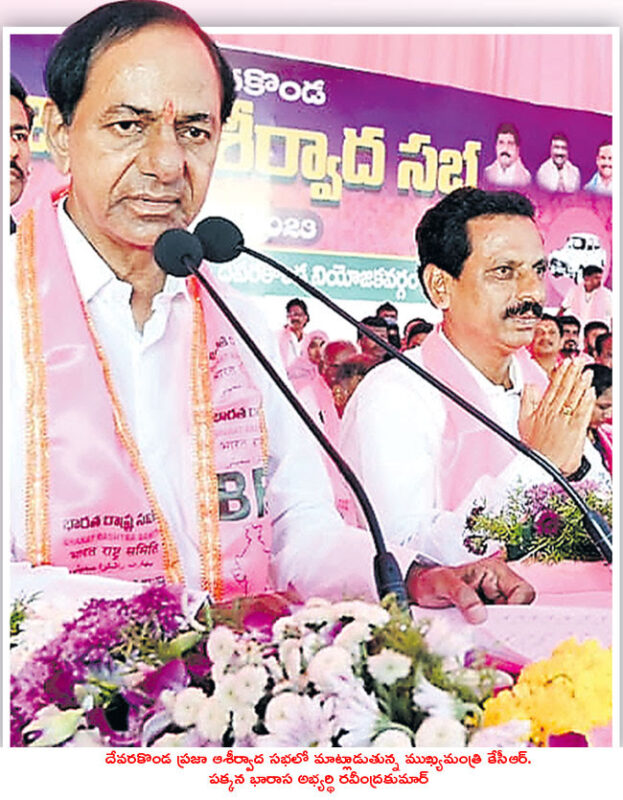 Today, Nalgonda: ‘There is no condition for Congress to win in the state. Believing in that party, farmers in Karnataka started planting. The leaders of that party want votes, positions, piravis and contracts but they don’t care about people’s sufferings. A dozen people are contesting for the post of CM in Telangana Congress. They are fighting for it. CM KCR asked the people to vote by looking at the attitude, viewpoint and perspective of the competing parties. CM KCR participated in public blessing meetings held on Tuesday in Hujurnagar, Miryalaguda and Devarakonda in the joint Nalgonda district. MLAs campaigned in support of Sanampudi Saidireddy (Huzurnagar), Nallamotu Bhaskar Rao (Miryalaguda) and Ramawat Ravindra Kumar (Devarakonda). On this occasion, KCR in his speeches criticized the Congress and explained what they will do if they come back to power. “Dindi lifting was delayed due to lawsuits by Congress leaders. All the complications of the court are being resolved now. We will complete it soon. Irrigation woes will be over in two, two and a half years. They have referred to the Krishna Tribunal because we have been fighting with the Center for ten years for water share. Congress miscreants are attacking our MLA candidate with knives and creating anarchy. We haven’t bothered anyone for ten years. As long as KCR is alive, the state will remain secular.