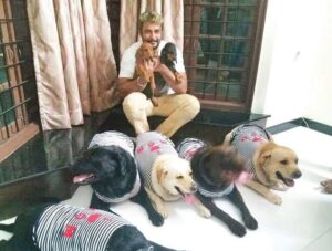When she returned to her car after the program,she noticed three dogs belonging to darshan’s house along with a caretaker near her car.