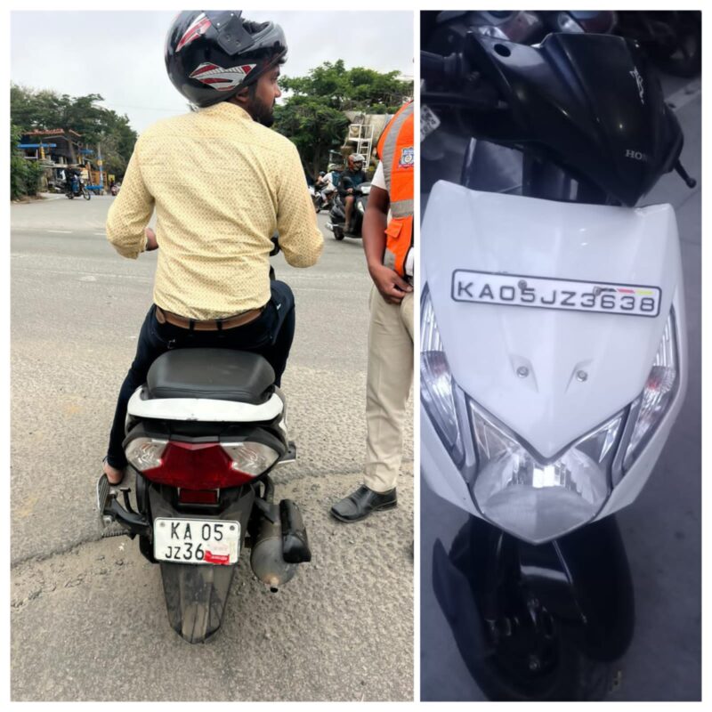 Earlier the Talaghattapura police caught a 29-year-old scooter rider who was masking two digits of his registration number plates on both sides.