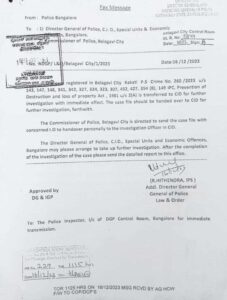 On Saturday,Additional Director General of Police ( law and order) R Hithendra has written a letter to Director General of Police CID to take over the case while marking a copy to the commissioner of Police,Belagavi city to hand over the case with immediate effect .