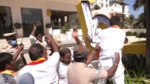 They were also seen entering the hotel premises chanting pro-Kannada slogans.Marching towards Chikkajala,pro-Kannada workers defaced and removed many signboards.