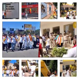 Day after the violent protest and subsequent arrest of KRV activists,Pro Kannada Organizations continued protest demanding the release of KRV President Narayana Gowda and his associates .