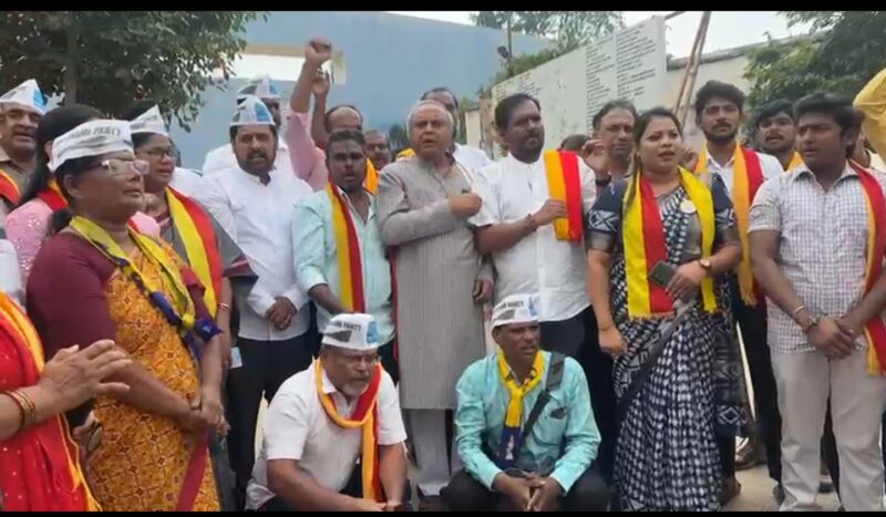 Similar protest was held at Badminton Association at Vasanthnagar where another KRV Faction led by Praveen Shetty,Sara Govinda and literates Doddarange Gowda,Hampa Nagaraj and Kannada Sahitya Parishad, president,Mahesh Joshi demanded the government to release the arrested activists without any condition.